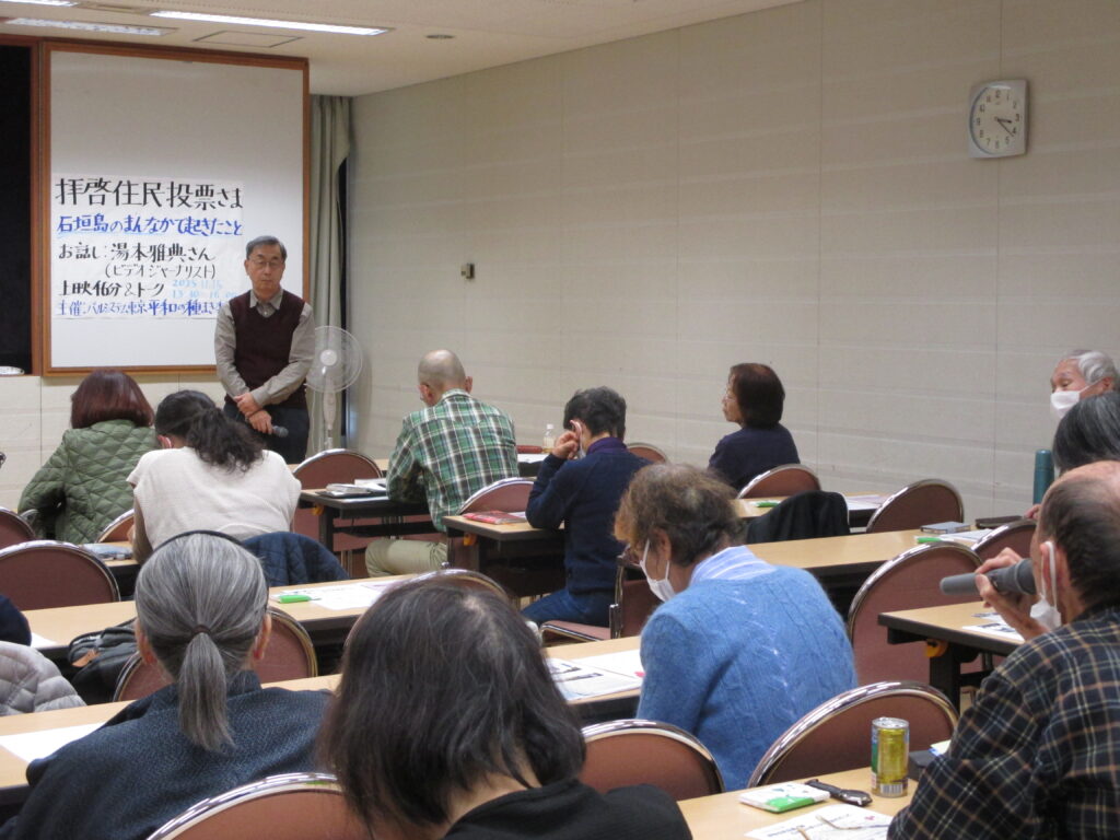 11月15日、東京都東久留米市で「拝啓住民投票さま」の自主上映会がありました。参加は、30人。主催は、生協パルシステム東京・平和の種まき委員会です。